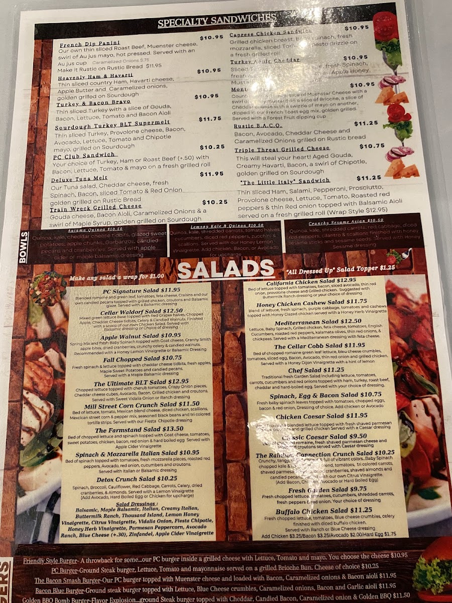 - Sandwiches & Wraps: A range of sandwich options including specialty melts and wraps are available, often paired with dressings such as blue cheese.